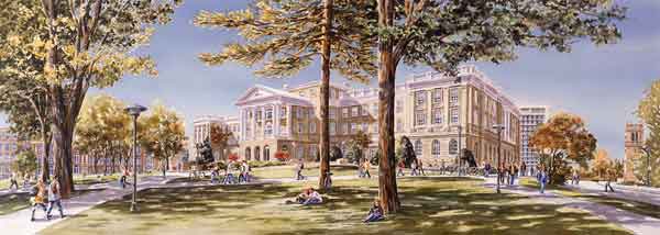 | These accurate reproductions of Lynn Casper's original paintings of the Madison Campus are printed with fade-resistant inks on heavyweight acid-free paper. Color, as seen on your monitor may vary from that of the artwork. |